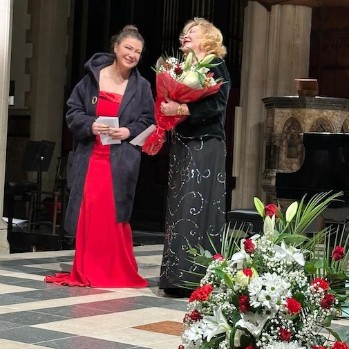 Konseri düzenleyenSectoral Events adına Arzu Güler, sanatçımız Gülsin Onay'a çiçek verdi
