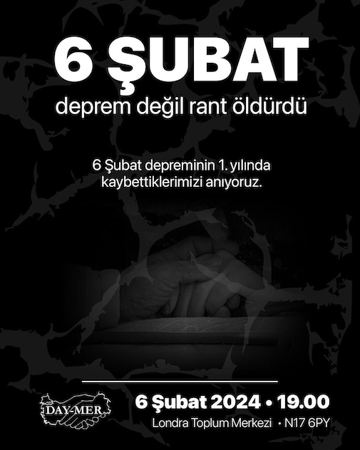 Londra merkezli Day-Mer tarafından gönderilen açıklama şöyle: "6 Şubat 2023 Pazartesi günü, Maraş il sınırları içinde peş peşe meydana gelen yıkıcı depremler sonucunda, resmi rakamlara göre 50 binden fazla insan yıkılan evlerin, otellerin, binaların göçüğü altında kalarak can verdi, yüz binlercesi yaralandı. Bu depremler, Kahramanmaraş’ın yanı sıra, Hatay, Adıyaman, Malatya, Gaziantep, Şanlıurfa, Diyarbakır, Osmaniye, Adana, Kilis ve Elazığ illerinde de yıkıntılara ve ağır hasarlara yol açtı, bazı kent ve kasaba merkezleri ile çok sayıda köy tamamen yok olma aşamasına geldi. Maraş depremlerinin bir katliama dönüşmesi tüm toplumun gözleri önünde gerçekleşti. On binlerce yurttaşımız, zamanında ve yeterli ekipmanla müdahale edilerek kurtarılabilecek durumda olmasına rağmen, çaresizce beklerken can verdi. Çöken binalar altında kalanlara günlerce el uzatmayan ‘devlet’ göçük altında çıkanların ihtiyaç duyduğu yardım elini hala uzatmış değil. Yıkımların yaşandığı illerde sorunlar çözülmüş değil. Barınma en temel sorun olarak devam ederken, hijyene, sağlığa, elektriğe, temiz suya, ve gıdaya erişim ise hala çok yetersiz. Aradan geçen bir yıla rağmen depremzedelerin ne yaraları sarılabildi ne de ihtiyaçları karşılandı. Aralarında çocuklarda olmak üzere bedenleri bulunamayan ya da akıbeti belli olmayan çok sayıda kayıp var.