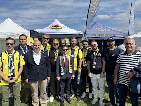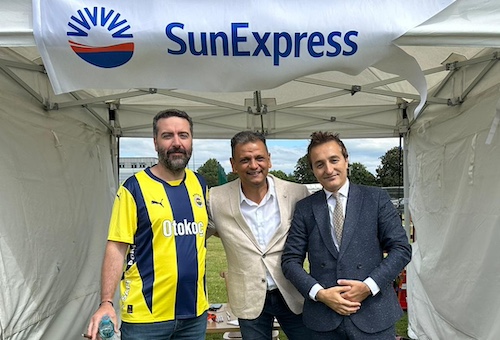 Sunexpress standında Sunexpress İngiltere Müdürü Hakan Ortatepe, Right Holidays ortaklarından ve İngiltere Fenerbahçeliler Derneği ASbaşkanı Sinan Aydın ve Avrupa gazetesi sahibi Vatan Öz