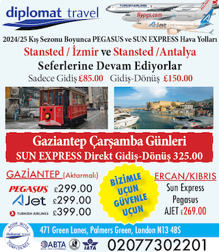 AVRUPA GAZETESİ/İNGİLTERE-37 yılı aşkın İngiltere'nin başkenti Londra'dan seyahat rezervasyonlarınız baiarıyla yapan Diplomat Travel, en rekabetçi fiyatlarla hizmetinizde. Diplomat Travel ile SunExpress Hava Yolları uçaklarıyla Stansted / İzmir ve Stansted /Antalya Seferlerine 2024/25 Kış Sezonu Boyunca Devam Ediyor. Diplomat Travel, IATA akreditasyonu ve hem ABTA hem de ATOL teminatıyla, ylcularına uluslararası tam bir güvence ile rezervasyon yapıyor.