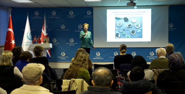 Londra Yunus Emre Enstitüsü ev sahipliğinde, ünlü Türk mutfak uzmanı Özlem Warren'in yeni yemek kitabı "SEBZE: Türk Mutfağımdan Vejetaryen Tarifler "in tanıtıldığı ilgi çekici ve katılımcıların kendilerini adeta Türkiye’de misafirlikte hissettikleri bir akşam düzenlendi. Katılımcılar, 17 Nisan akşamı saat 19:00'da düzenlenen etkinlikte Özlem Warren ile bir araya gelme, Anadolu mutfağının etkilerini öğrenme ve Türk mutfak geleneklerinin akıcı ve ilgi çekici bir şekilde vejetaryen yemeklere nasıl dahil edilebileceğini keşfetme fırsatı buldu. Ödüllü bir yazar ve saygın bir Türk yemekleri öğretmeni olan Özlem Warren, okuyucuları Türk vejetaryen yemeklerinin dünyasına davet eden son kitabı "SEBZE "yi tanıttı. Kitap, günlük öğünler için mükemmel Türk yemeklerinin ruhunu yansıtan çeşitli, kolay takip edilebilir vejetaryen tarifler sunuyor.