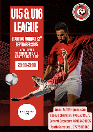 U15 & U16 League Starting Monday 22nd September 2025. Time: 20:00-21:00 Place: New River Stadium Sports Centre London N22 5SW