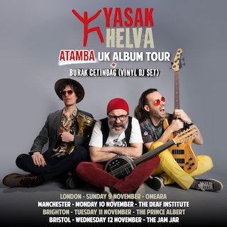 Anadolu füzyon müziğinin sınırları zorlayan üçlüsü Yasak Helva, yeni albümleri Atamba ile Kasım ayında dört şehri kapsayan ilk İngiltere turnesine hazırlanıyor. Psychedelic rock, grunge, caz, funk ve Anadolu halk müziğini; keskin, aykırı ve yaratıcı sözlerle harmanlayan Yasak Helva, son yıllarda Türkiye’den çıkan en özgün ve heyecan verici gruplardan biri. Cümbüş, çağlama, perdesiz gitar, perküsyon ve elektronik enstrümanlarla yarattıkları ses dünyalarinda; Anadolu’dan Balkanlara, Sibirya’dan Batı Avrupa’ya uzanan tınıları ustaca birleştiren grup hem köklere dayanan hem sofistike aynı anda dogal ve de tamamen kendine özgü bir muzik yaratıyor. Yasak Helva, 2018’de Ironhand Records’un uluslararası ilgi gören Saz Power derleme albümünde yer alan “Silifke Zeybeği” yorumuyla dikkatleri üzerine çekmiş, ardından yayımladıkları ilk albüm Rektefe ile övgü toplamıştı. 2024’te yayımlanan ve Moğollar’a Saygı albümünde de yer alan enstrümantal “Bu Nasıl Dünya” yorumu, grubun özgün çizgisini daha da görünür kıldı. Haziran 2025’te Gülbaba Records etiketiyle çıkan ikinci albümleri Atamba ise Yasak Helva’yı daha cesur bir noktaya taşıyor. Tamamı kendi bestelerinden oluşan albüm, uluslararsi muzik dunyasinda artan bir ilgi görürken, muziklerini Avrupa’daki Anadolu psychedelic diriliş gruplarının ötesinde, sınır tanımayan bir manifesto olarak sunuyor.