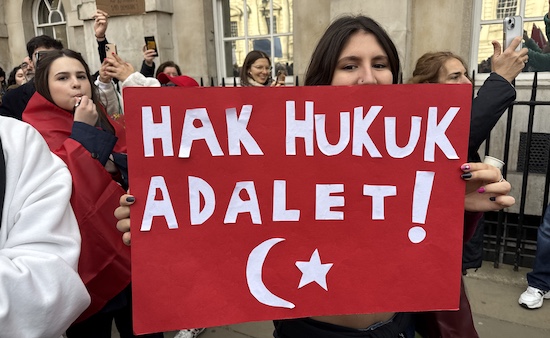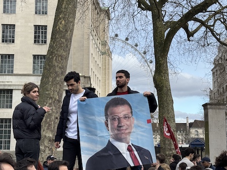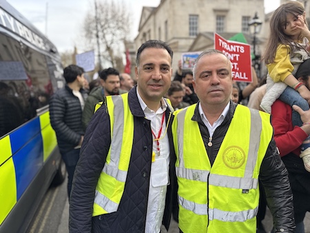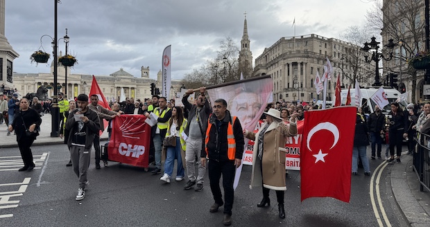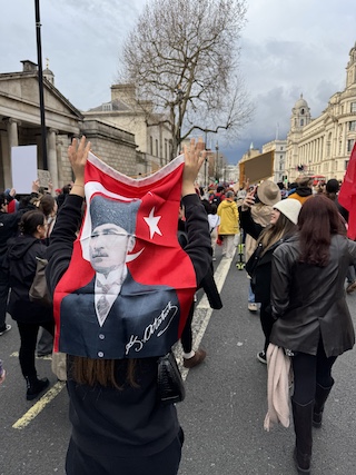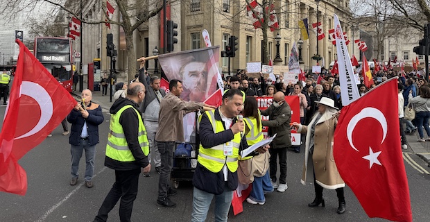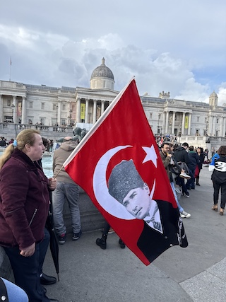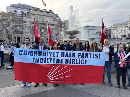 Yurtseverler, Trafalgar Meydanı'nda toplanıp, Downing Street 10 Numara'ya İngiltere Başbakanı Kier Starmer’ın konutuna kadar yürüdü. Meydanda toplananlar, marşlar, şarkılar ve ellerindeki dövizlerle, “Gün gelecek, devran dönecek, AKP halka hesap verecek” ve "Susma, sustukça sıra sana gelecek" sloganlarını attı.